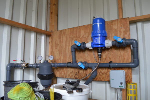 Een andere oplossing is het gebruik van een pulspomp. Deze injecteert het zuur in de druppelleiding. De dosering is mede afhankelijk van de gewenste pH in de fertigatieleiding. Bevat het uitgangswater bijvoorbeeld een heel hoog gehalte bicarbonaat, dan kan het nodig zijn om dit eerst in de oplosbak grotendeels weg te bufferen en met de pulspomp te finetunen.