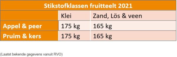 Komend seizoen krijgen we te maken met een aantal wijzigingen met betrekking tot het bepalen van de gebruiksruimte van fosfaat. De belangrijkste wijziging is dat er gebruikgemaakt gaat worden van andere analysemethodes om de uiteindelijke fosfaatklasse te bepalen. Voor heen werd dit voor de fruitteelt gedaan op basis van het Pw-getal. De verwachting is dat dit in de toekomst wordt gedaan op basis van een combinatie van P-Al en CaCl2. Lees ons bericht van 9 februari voor meer achtergrondinformatie. Op percelen waar geen gebruik gemaakt wordt van fosfaatdifferentiatie blijft de norm 40 kg/ha.