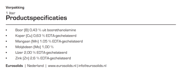 Let op: Chelaten kunnen het beste niet worden gemengd met andere metaal bevattende producten, zoals mancozeb, aluminiumfosfiet of koperoxychloride.