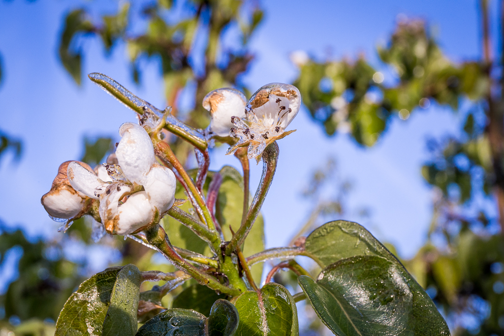 Stimuforce Asco zorgt er onder andere voor dat het gewas minder gevoelig wordt voor een periode met lage temperaturen. In de afgelopen week is bij diverse rassen de bladontwikkeling behoorlijk op gang gekomen waardoor de toepassing van Stimuforce Asco aan de orde is wanneer de omstandigheden hier om vragen. Dit product bestaat voor 85% uit hoogwaardig zeewierextract, aangevuld met aminozuren en vitaminen. Door het inzetten van Stimuforce Asco wordt het gewas hormonaal voorbereid op een periode van abiotische stress en wordt de suikerproductie tijdelijk verhoogd. Voor een optimaal effect is het belangrijk om dit product preventief in te zetten op ongeveer 3 dagen voor de verwachte stressperiode. Van Stimuforce Asco mag ongeveer een week werking worden verwacht. Afhankelijk van de specifieke situatie is het dus van belang om de toepassing tijdig te herhalen wanneer de omstandigheden hier om vragen. Wanneer Stimuforce Asco tijdens de bloeiperiode wordt toegepast, heeft dit een stimulerend effect op de zetting van de vruchten. Hierbij kan worden uitgegaan van 3 toepassingen vanaf het begin van de bloei in zowel appel als peer.