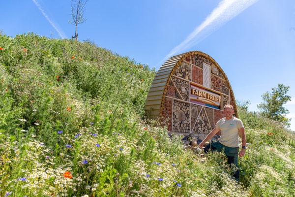 Farm Frites levert met deze begroeiing een bijdrage aan de groei van de bijenstand. Door ‘de Groene Cirkels’, een breed gedragen initiatief voor het behoud en de verspreiding van een diversiteit aan bijen en andere bestuivende insecten, werd een meerjarig bloemen- en kruidenmengsel geadviseerd. Op advies van Van Iperen werd daar nog een eenjarig mengsel aan toegevoegd. Om te zorgen dat ze met zo min mogelijk onkruid en gras te maken krijgen, is er meerdere keren gebruikgemaakt van een vals zaaibed, waarbij het onkruid van te voren kiemt en een paar keer wordt afgeschoffeld.