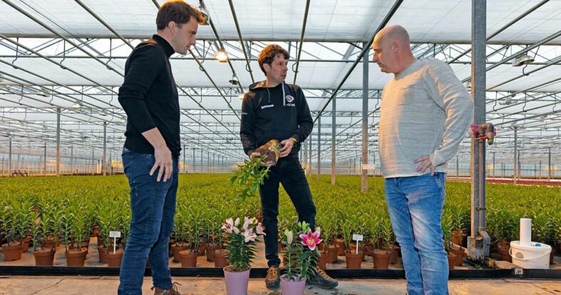Van Schie is al 35 jaar gespecialiseerd in de teelt van topkwaliteit potlelies en gebruikte tot twee jaar geleden oppervlaktewater als aanvulling op regenwater. “Daar kunnen wij prima lelies mee telen, maar na twee warme zomers zijn we daarvan afgestapt”, zegt Marcel van der Voort. Hij recirculeert 100%, maar heeft geen ontsmetter. Gestabiliseerde waterstofperoxide bevalt hem inmiddels beter. Lees hier het artikel uit de januari editie van Onder Glas.